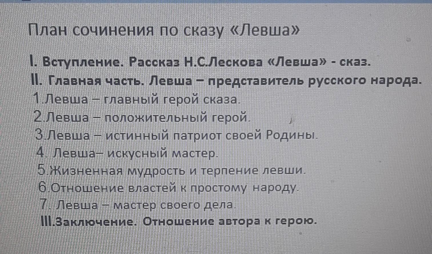 это план сочинения мне главное 2 часть этого сочинения первая и третья уже готовы
