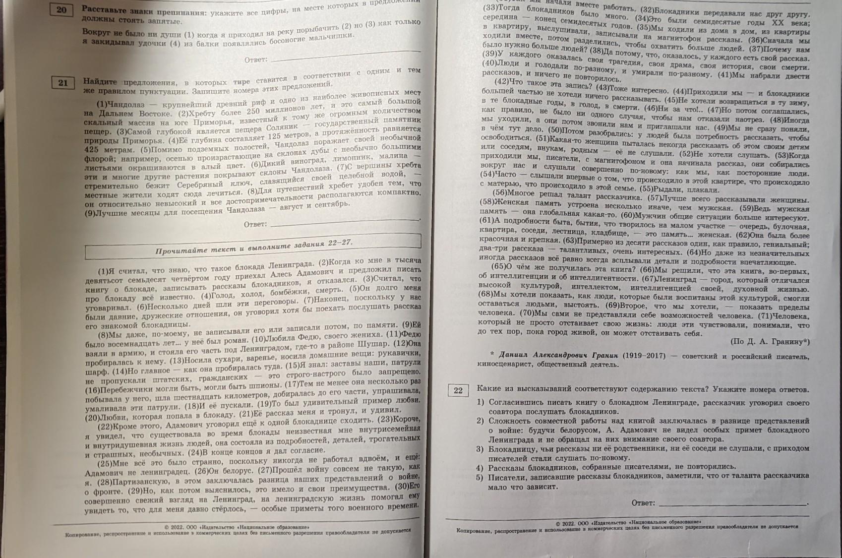 Напишите сочинение по отрывку текста Д.А Гранина (7 вариант, ЕГЭ, Цыбулько, 2022г.)