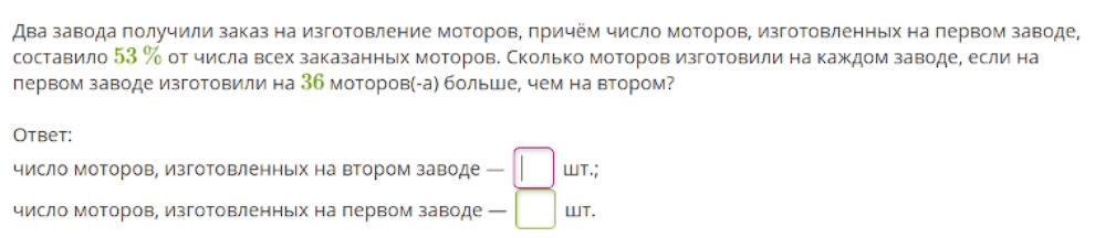 Ответ: на первом-954 моторов ,на втором заводе-918 моторов.