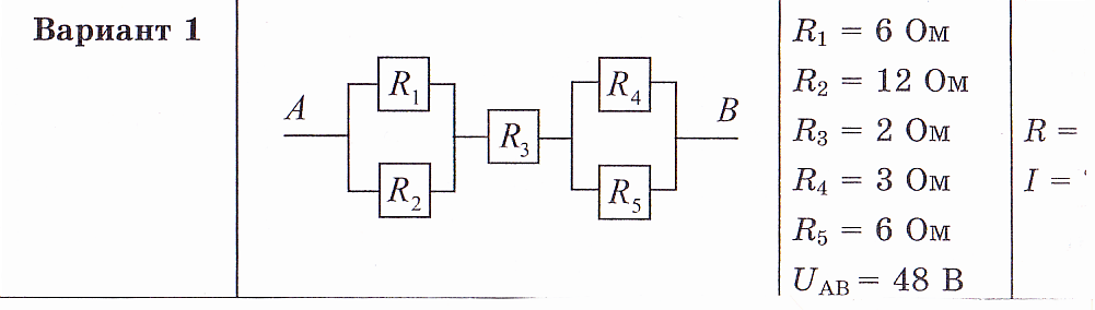 I = U÷Rобщ = 48 В ÷ 8 Ом = 6 А.