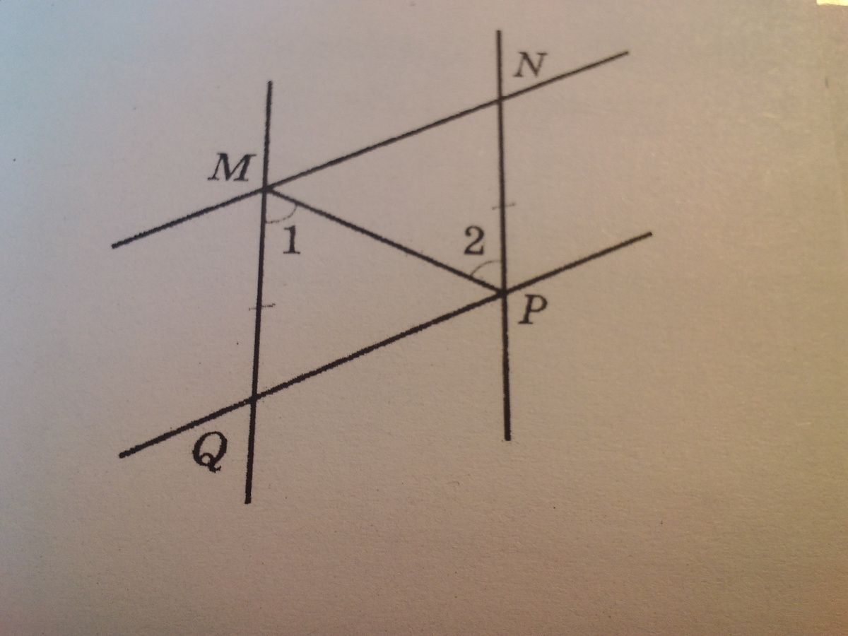 ∠NMP = ∠QPM, а эти углы накрест лежащие при пересечении прямых MN и PQ, значит