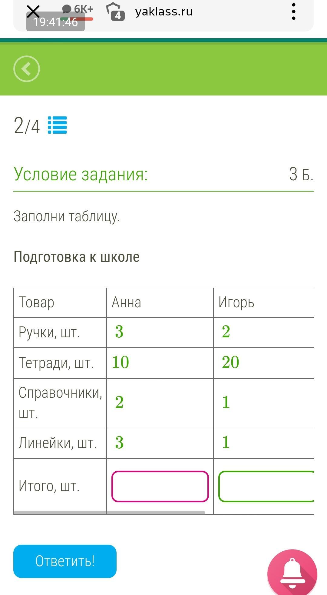 Ответ:Анна:18; Игорь:24 итого.