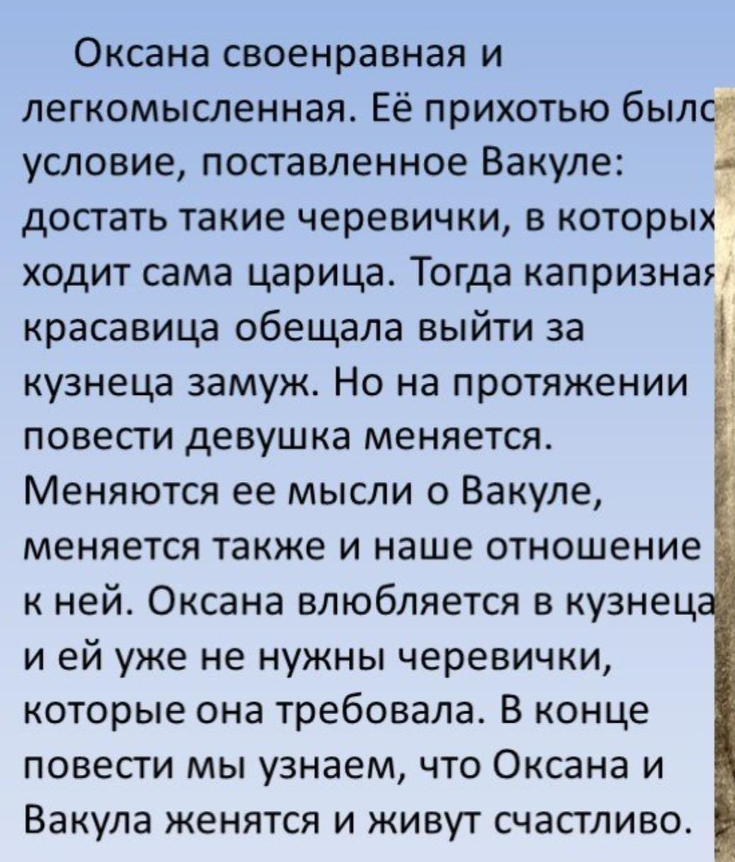 Срочно !!! При каких обстоятельствах в повести впервые заходит разговор о черевиках? Как реагирует Оксана на обещание кузнеца Вакулы достать ей такие «чернвики, какие редкая панночка носит»?