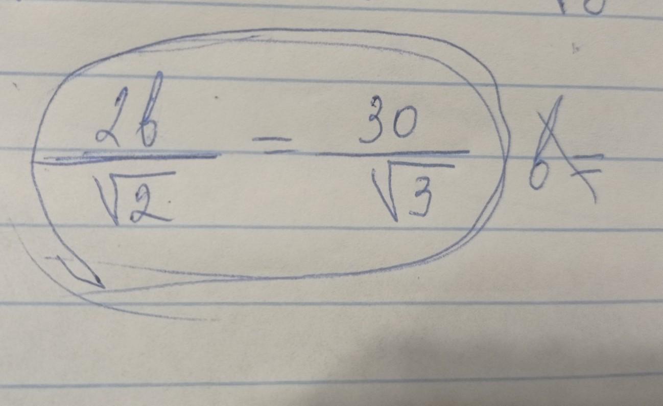 Произведение средних равно произведению крайних 2b*√3=30*√2, ,
