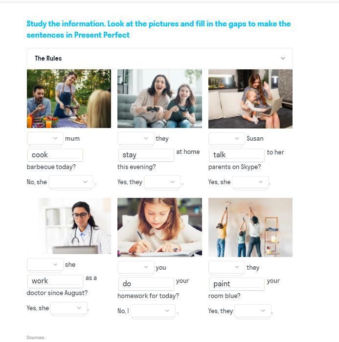 Study the information. Look at the pictures and fill in the gaps to make the sentences in Present Perfect.