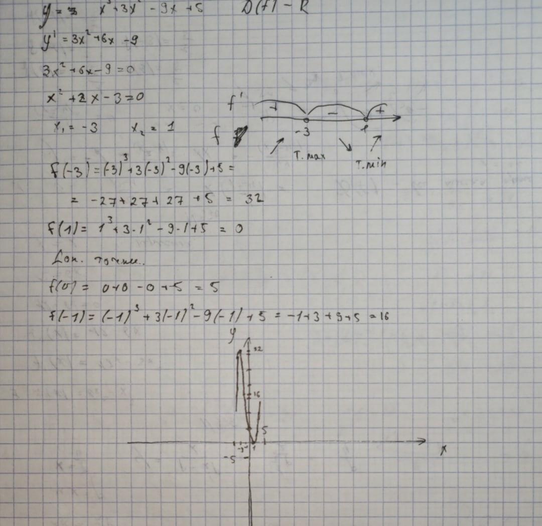 Исследовать функцию и построить график. y=x3+3x2-9x+5