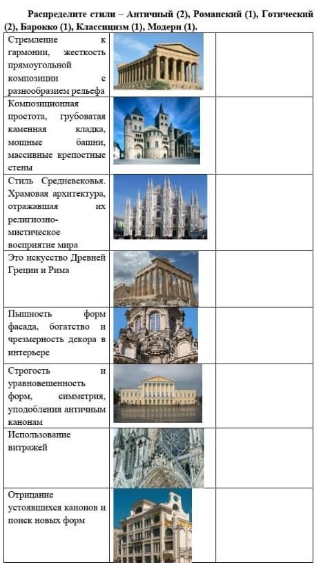 Антический-1 картинка, Романтический-2 картинка, Готический-3 картинка, Барако-8 картинка, Класицизм-4 картинка, Модерн-7 картинка