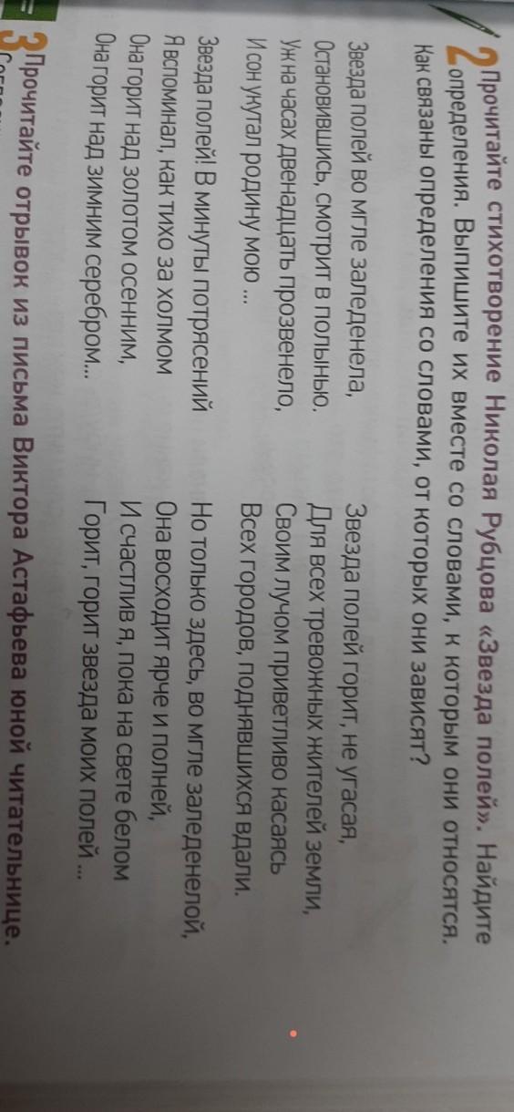 2. Прочитайте стихотворение Николая Рубцова «Звезда полей». Найдите определения. Выпишите их вместе со словами, к которым они относятся. Как связаны определения со словами, от которых они зависят?