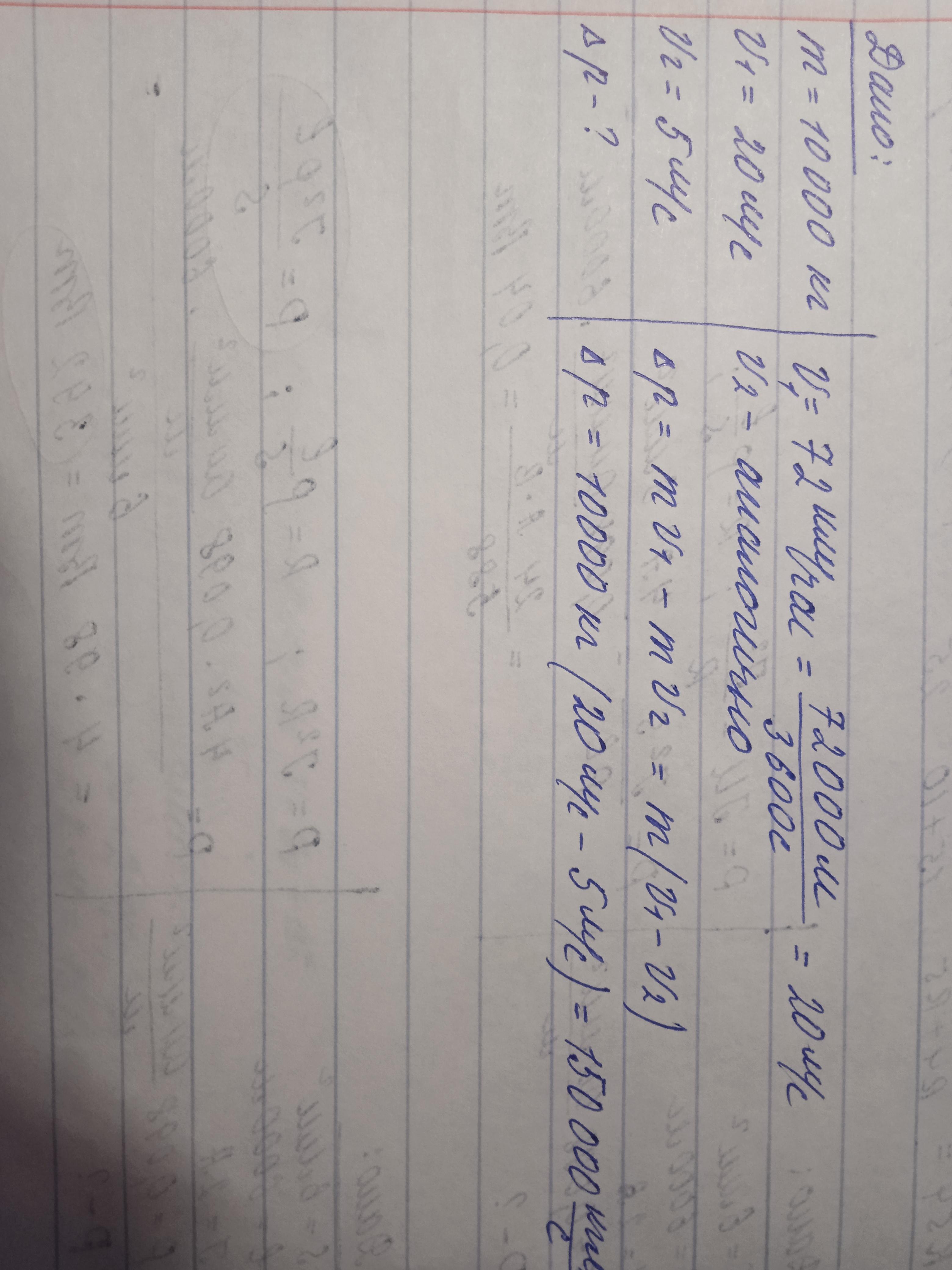 2. Машина массой 10 т, двигаясь прямолинейно, уменьшил скорость от 72 км/ч до 18 км/ч. Чему равно изменение импульса машины?