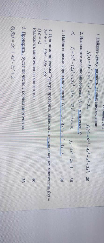 б) f(x) = 5·25 + 4·23 - 7·22 + 2 = 160 + 32 - 28 + 2 = 166 0. Следовательно, 2 - не является корнем многочлена.