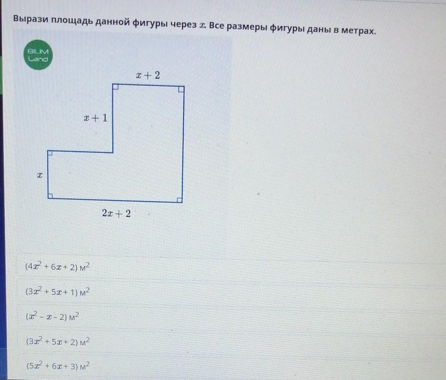 ответ 4-й: ( 3х² + 5х + 2) м²