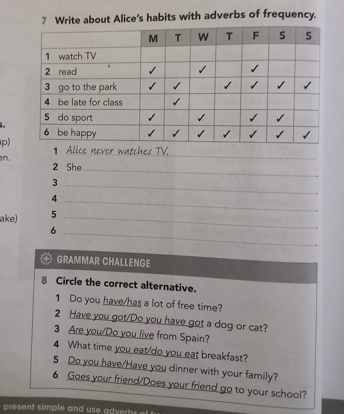 3.She goes to the park on monday, tuesday, thursday, friday saturday and sunday.