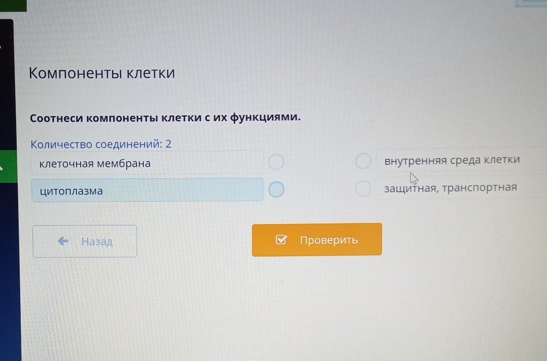 Компоненты клетки Соотнеси компоненты клетки с их функциями. Количество соединений: 2