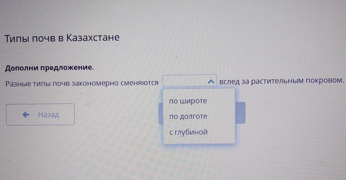Разные типы почв закономерно сменяются по широте всед за растительным покровом.