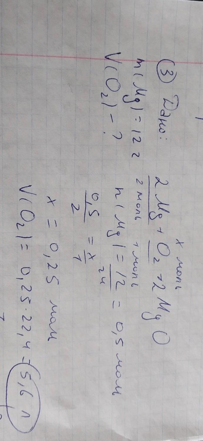 3. (*) Вычислите объем кислорода, который потребуется для сжигания порошка магния массой 12 г. (схема реакции: Mg + O2 ➝ MgO)