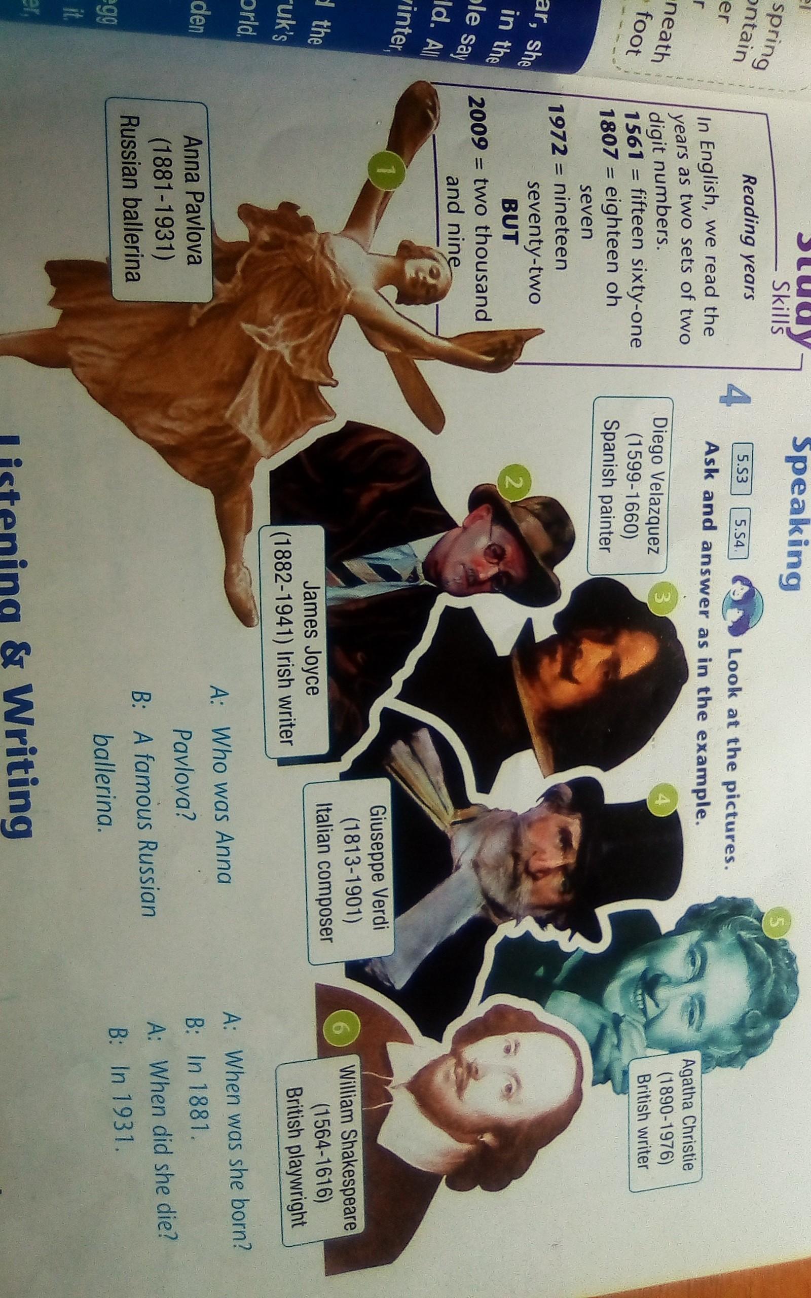 И по аналогии все остальные. Заменяйте только имена и фамилии, их профессии и даты рождения и смерти. Вся эта информация подписана под каждой известной личностью в учебнике.