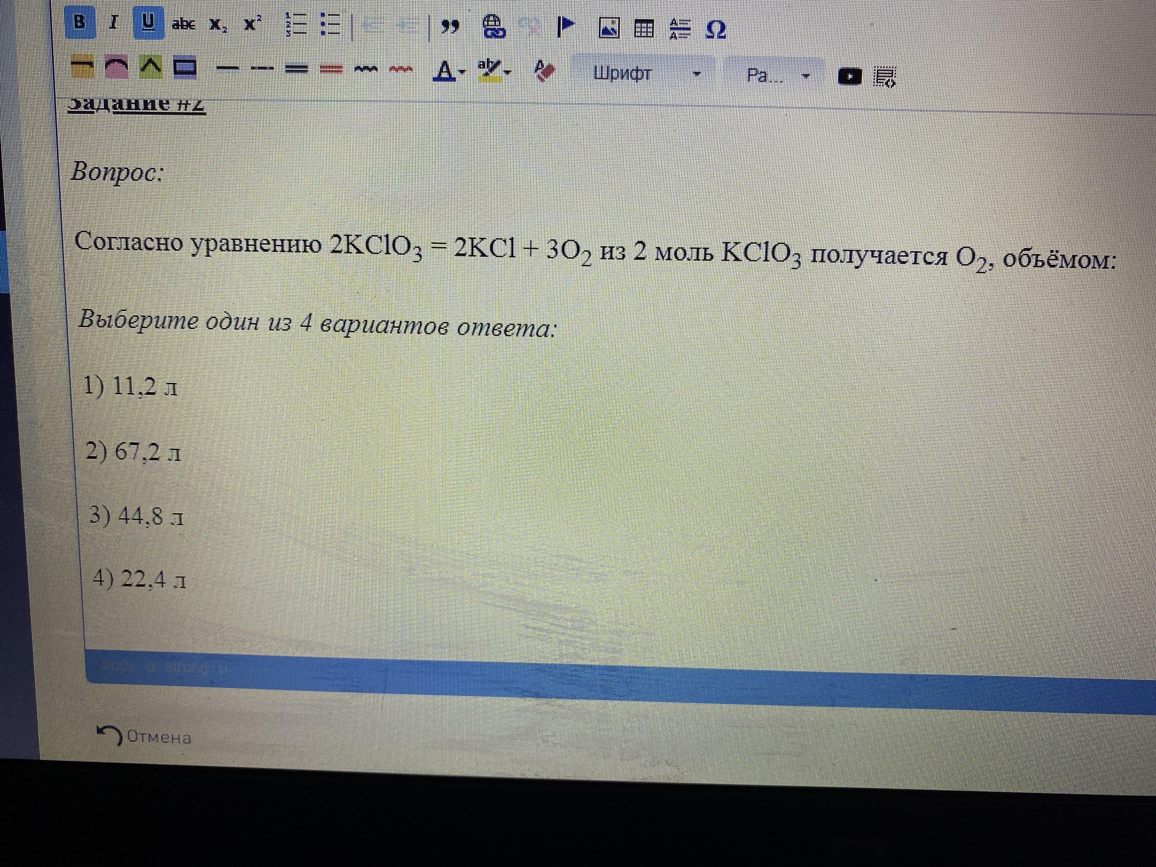 V(O₂) = n(O₂) × Vm = 3 моль × 22,4 л/моль = 67,2 л