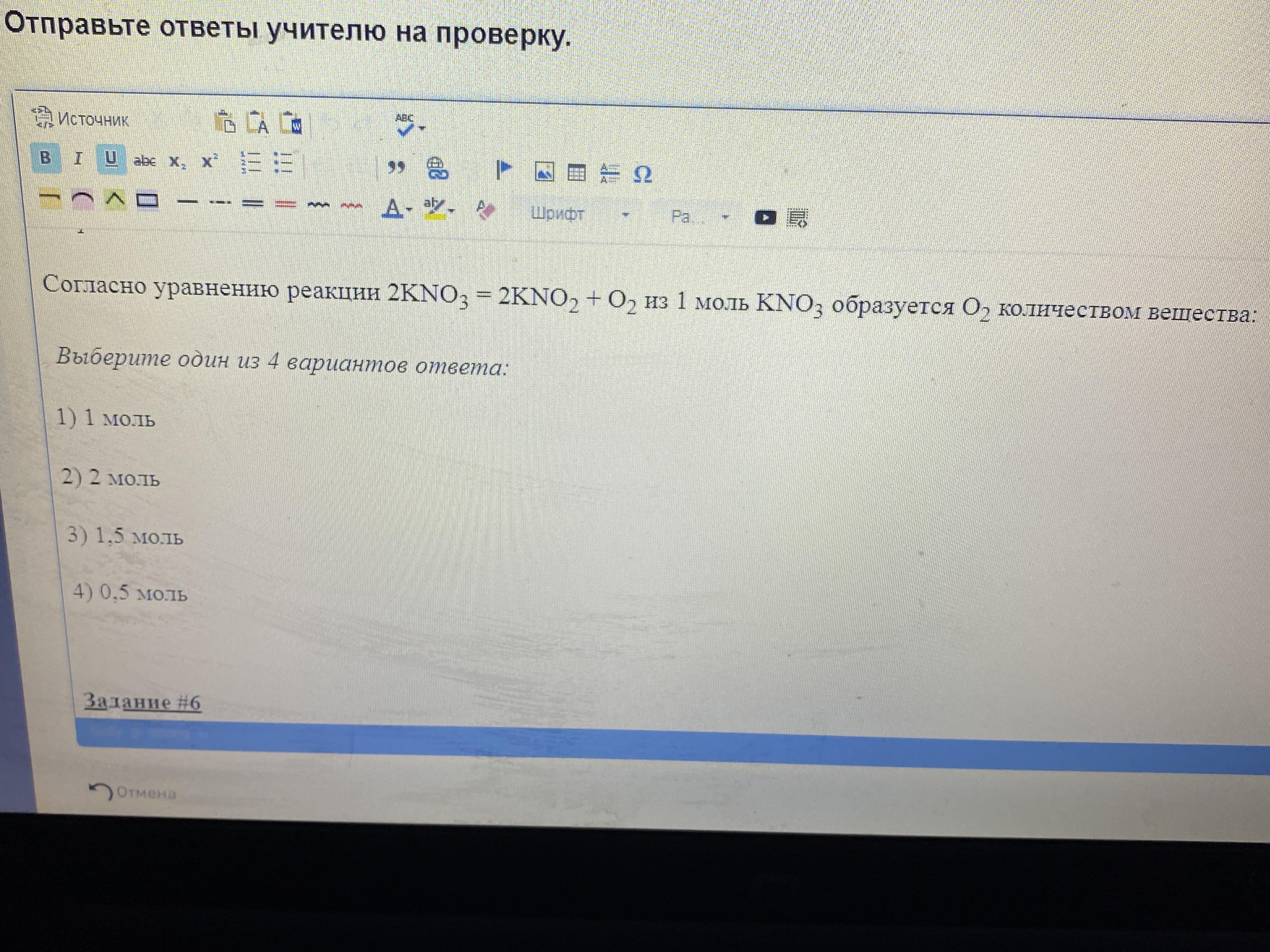 n(O₂) = 1/2 × n(KNO₃) = 1/2 × 1 моль = 1/2 моль = 0,5 моль