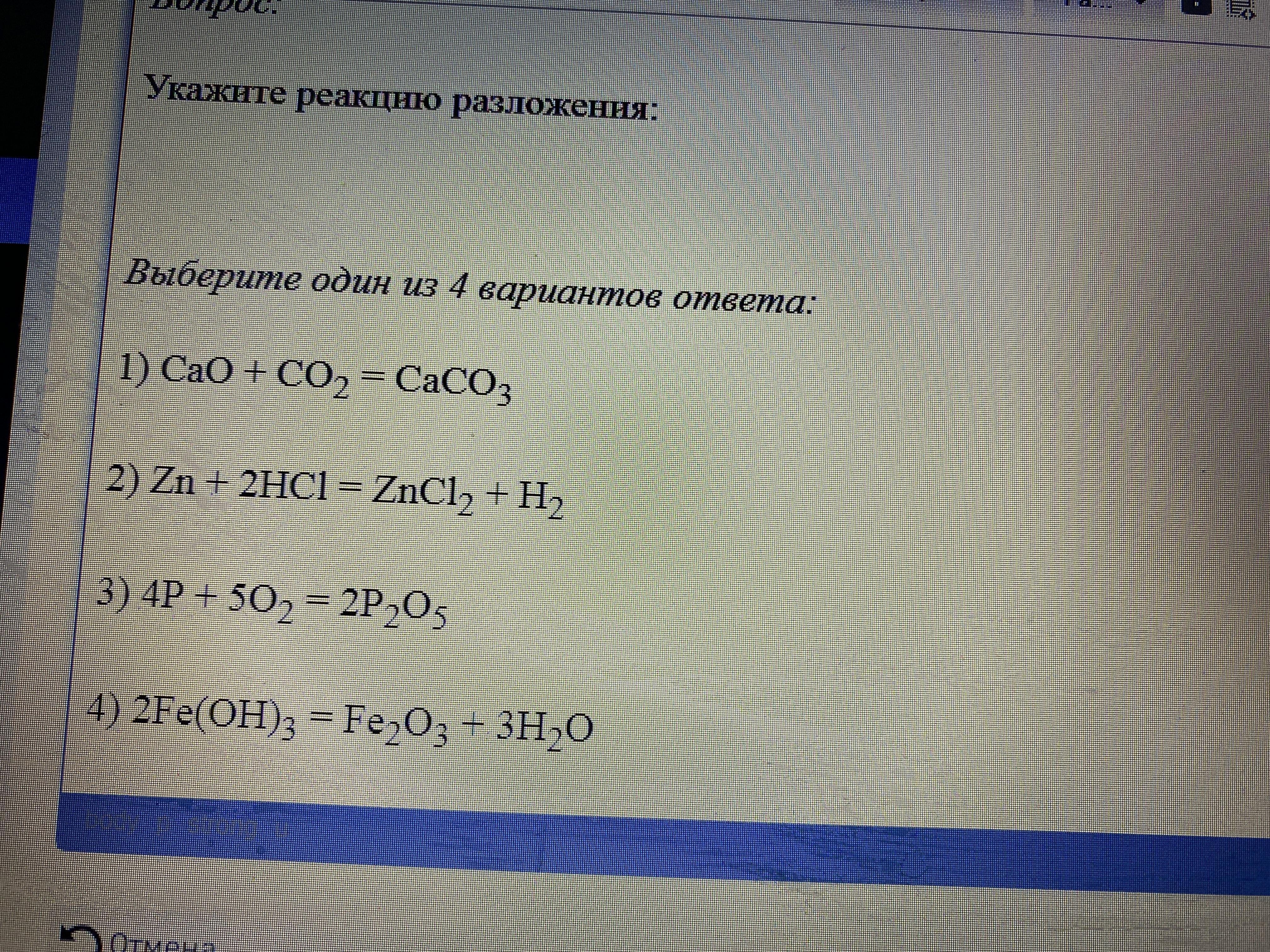 Ответ: 4) 2Fe(OH)₃ → Fe₂O₃ + 3H₂O