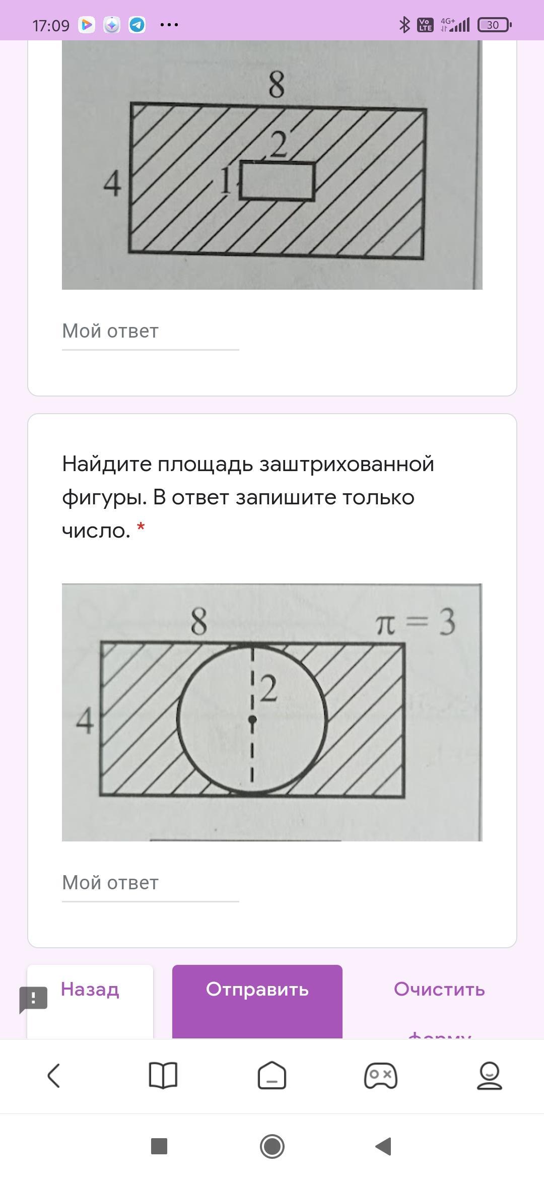 Площадь заштрихованной фигуры равна : 32-2= 30 см²