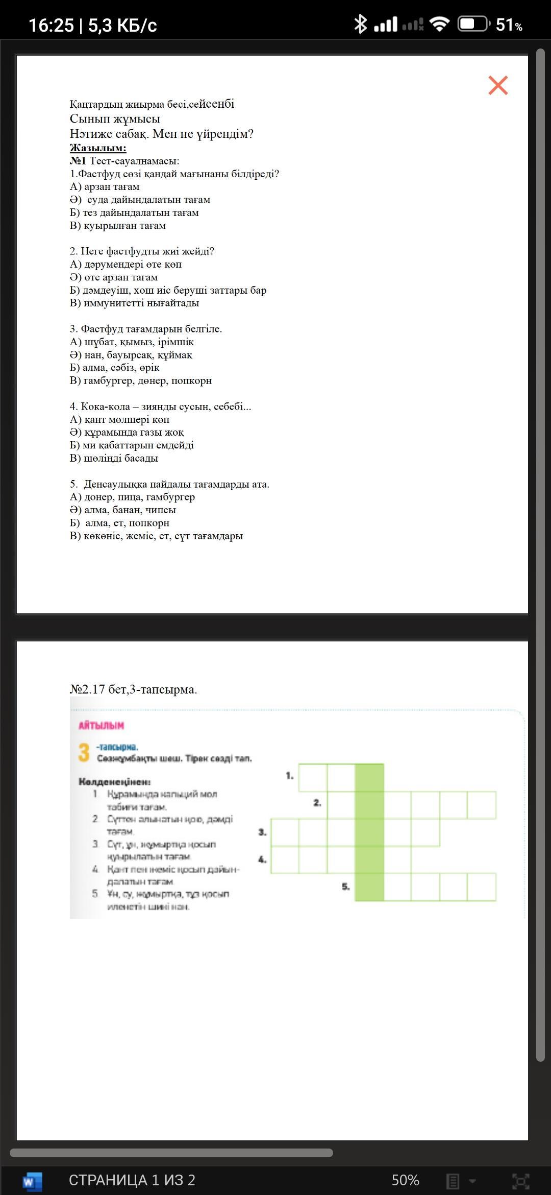 5. - В) көкөніс, жеміс, ет, сүт тағамдары.
