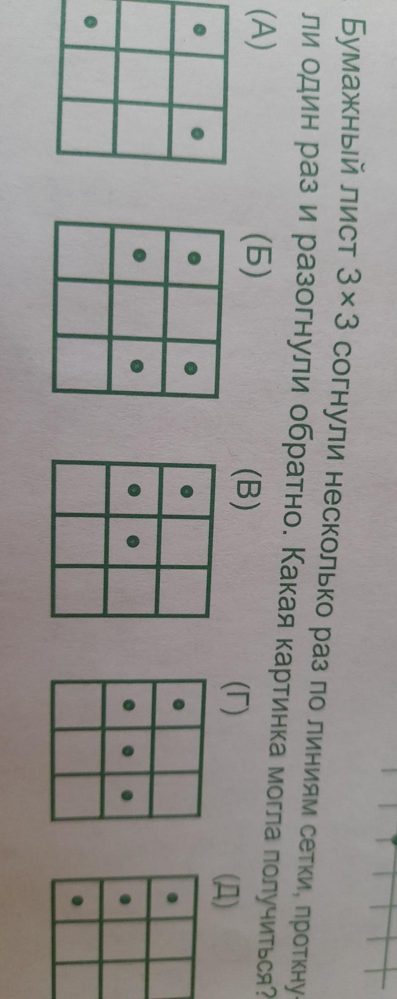 Бумажный лист 3х3 согнули несколько раз по линиям сетки, проткну- ли один раз и разогнули обратно. Какая картинка могла получиться?
