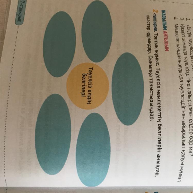 2-тапсырма. Топтық жұмыс. Тәуелсіз мемлекеттің белгілерін анықтап,