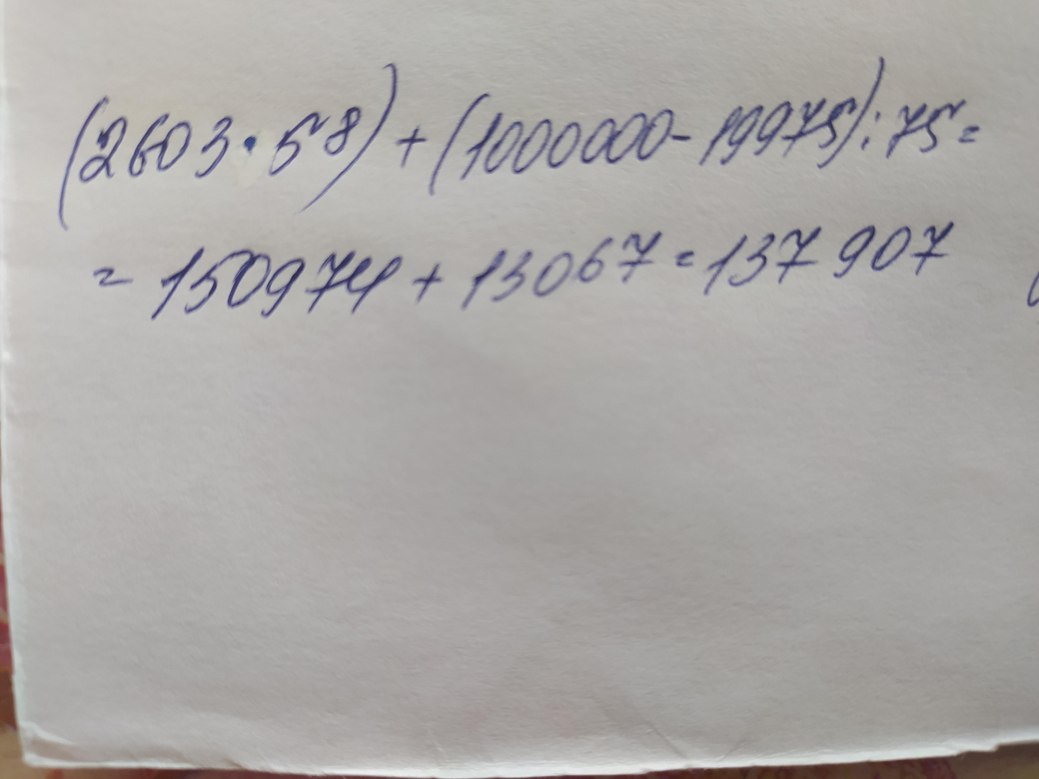 6) К произведению чисел 2 603 и 58 прибавить разность чисел 1 000 000 и 19 975, уменьшенную в 75 раз.Сомо решение
