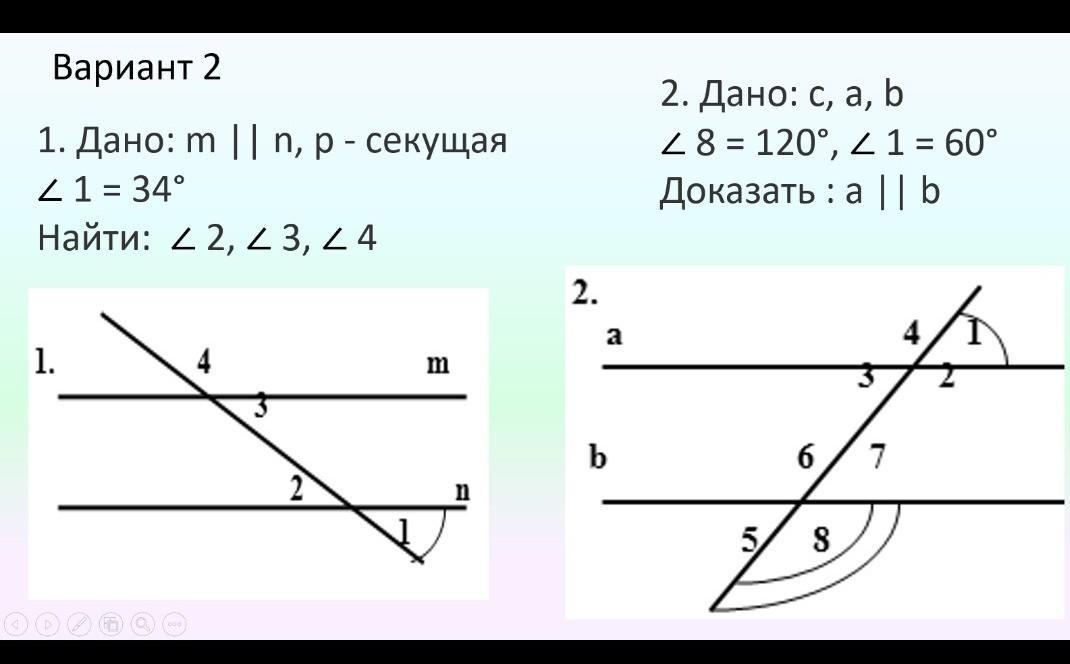 2 и 7 - односторонние, 2+7= 180° => прямые параллельны