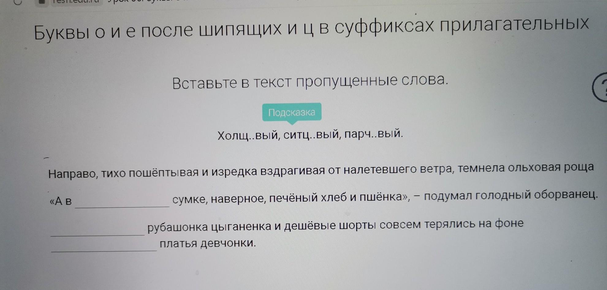 Объяснение: после шипящих в суффиксах прилагательных в безударном положении пишется Е, в ударном - О.