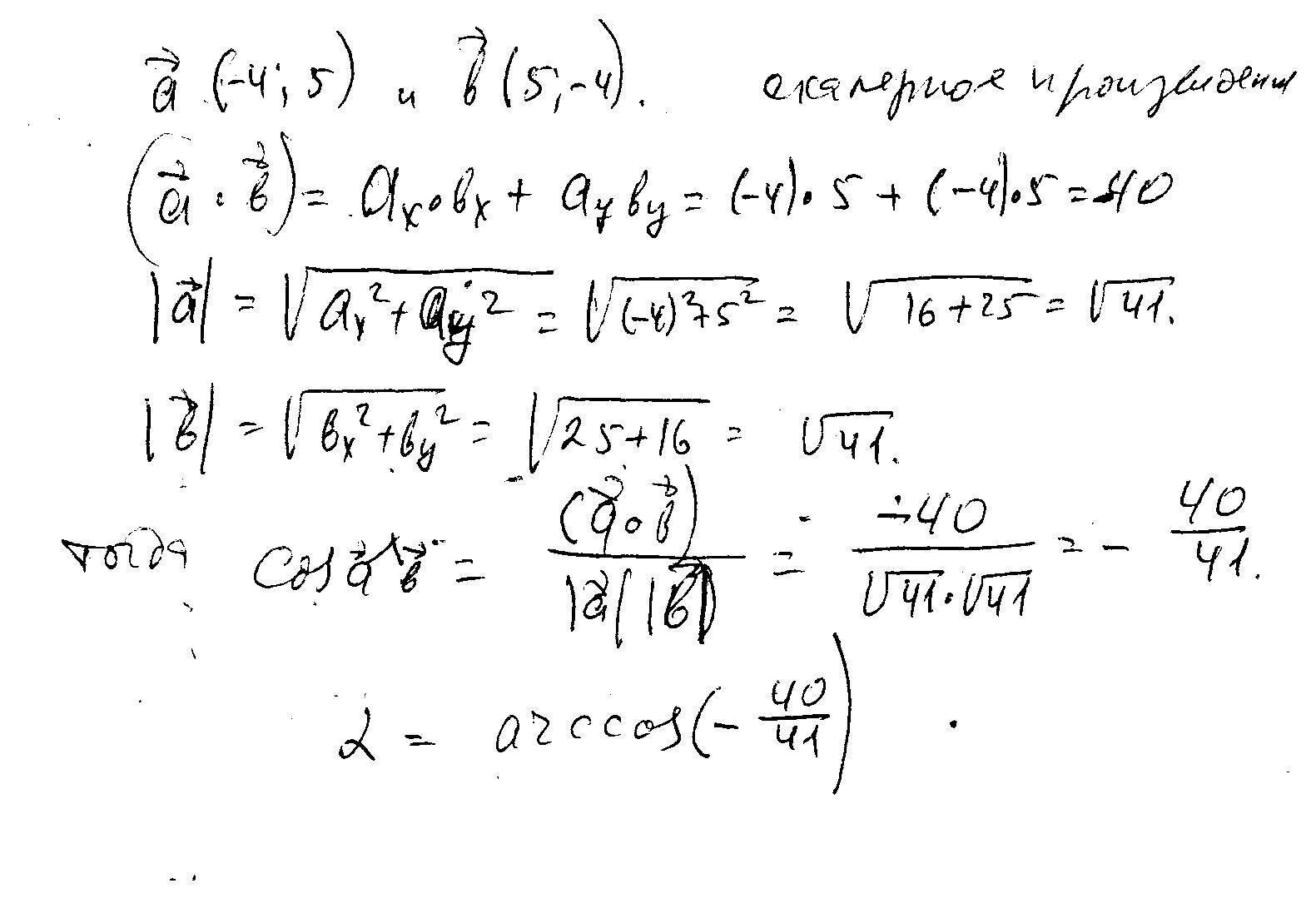 вычислите косинус угла между векторами a {-4;5} и b {5;-4}