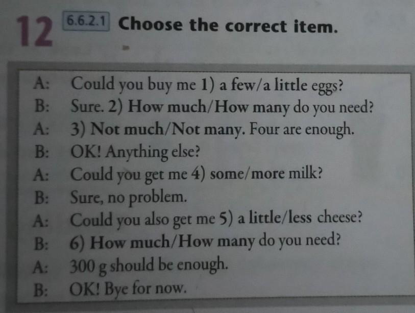 1.a few 2.how many 3.not many 4.some 5.a little 6.how much