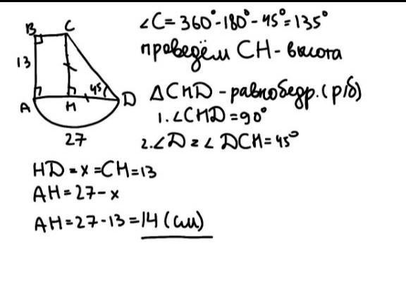 14 см длина меньшего основания