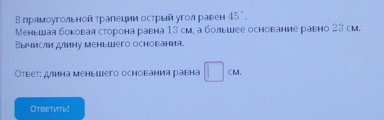 В прямоугольной трапеции острый угол равен 45 °.