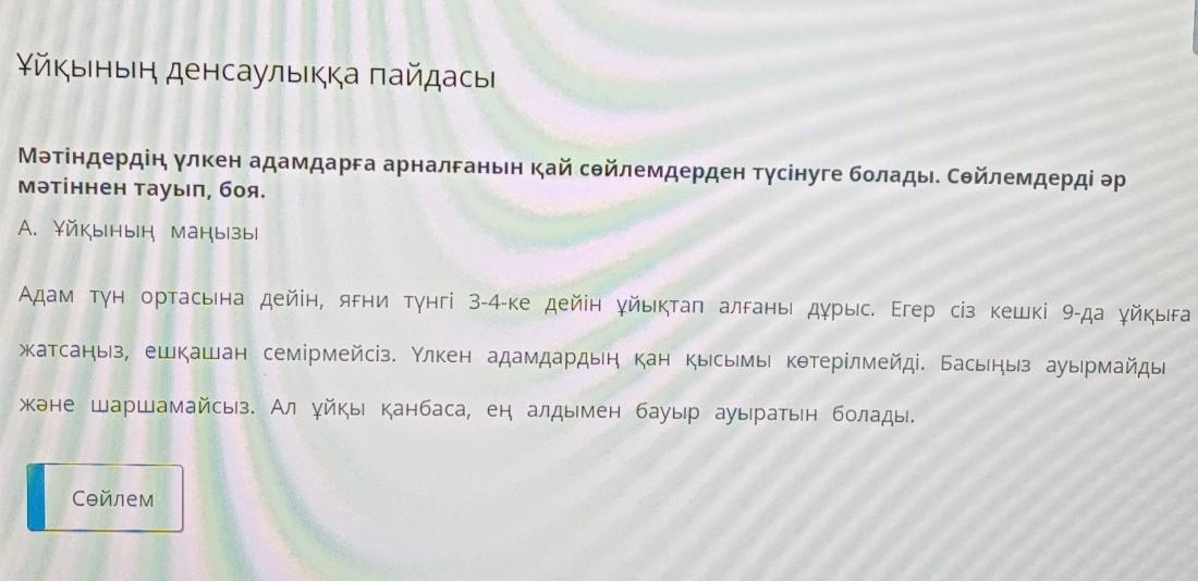 Мәтіндердің үлкен адамдарға арналғанын қай сөйлемдерден түсінуге болады. Сөйлемдерді әр мәтіннен тауып, боя.