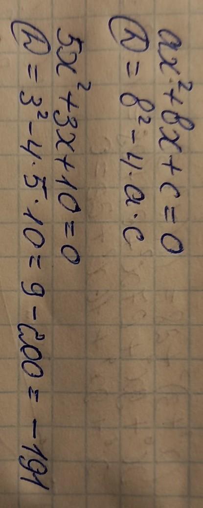 D = b² - 4ac = 3² - 4 · 5 · 10 =