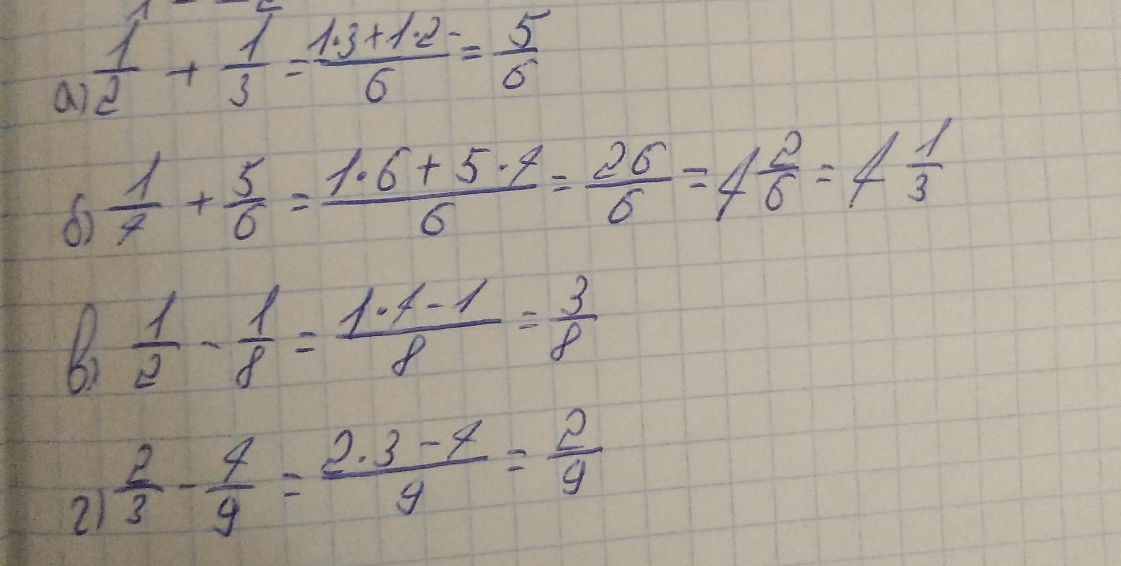1/4+5/6=3/12+10/12=13/12=1 1/12