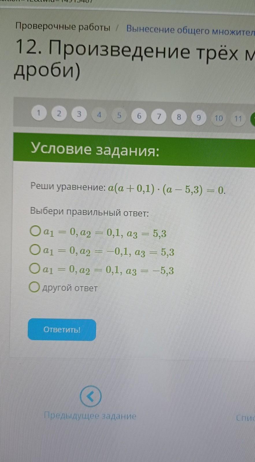 Произведение равно нулю, значит каждый сомножитель может быть нулём. Тогда а=0; а=-0.1, а=5, 3