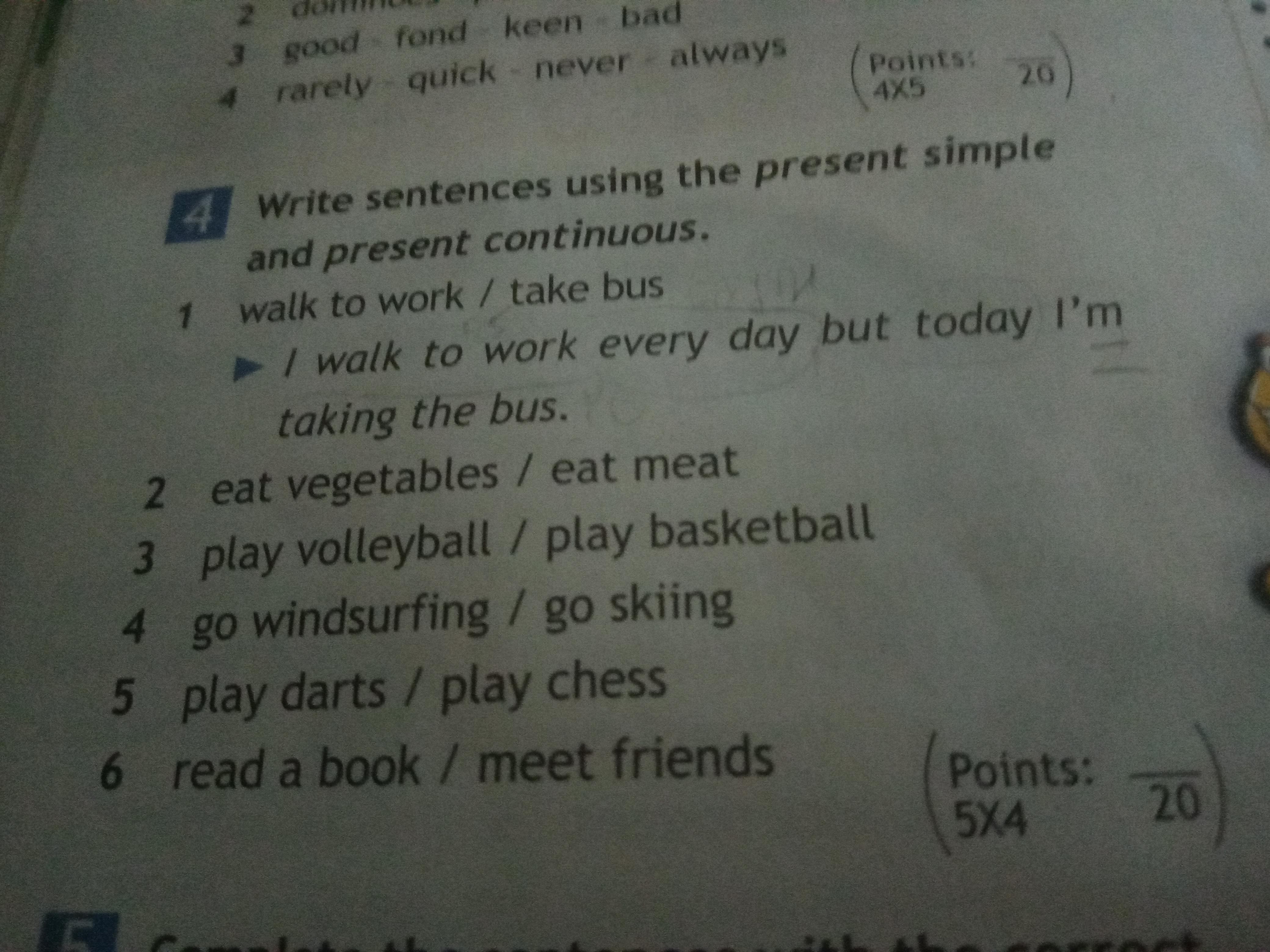 помогите пожалуйста, нудно списать предложение, используя настоящее простое и настоящее продолжительное,и ещё местоимение, 2 местоимение ко 2 предложению, 3 к 3 предложению, и так по очереди, составить пожалуйста, ДАМ 30 БАЛЛОВ