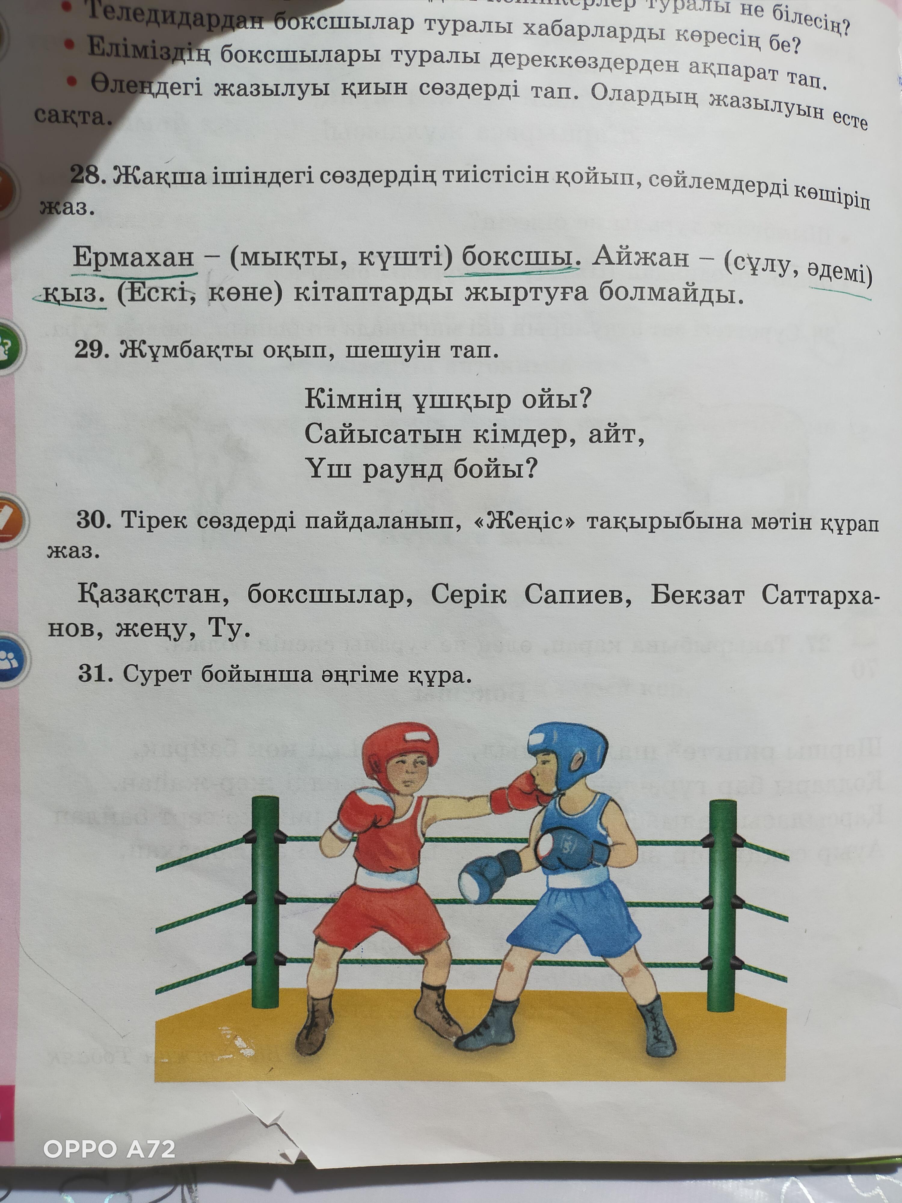 3! 2! 1! Бокс басталды.Жанкүйерлер лық толы. Барлық жанкүйерлер қолдау көрсетіп шулап жатыр. Рингте боксшылар бокстасыпбастап кетті. Оң жақ бұрышта қызыл киімде Бекзат , ал сол жақ бұрышта көк киімде Асхат бокстасып жатыр. Екеуіде жақсы дайындықпен келіпті, мүлде берілер емес, бір кезде уақыт бітті. Боксшылар келесі раундқа дайындалуға өз бұрыштарына тұрды. 2 раунд басталды. Боксшылар біраз шынықты, әлдеқайда жақсы кірісіп кетті. Және Бекзат жеңіске жетті.