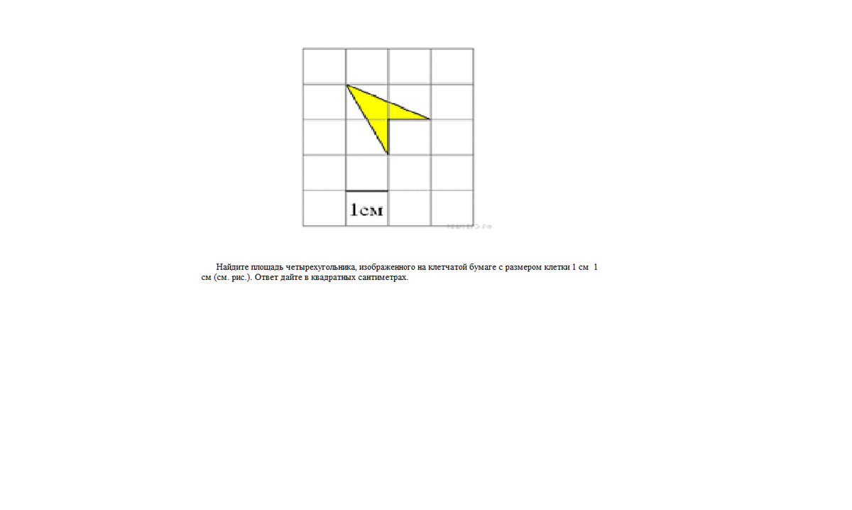 Найдите площадь четырехугольника, изображенного на клетчатой бумаге с размером клетки 1 см 1 см (см. рис.). Ответ дайте в квадратных сантиметрах.