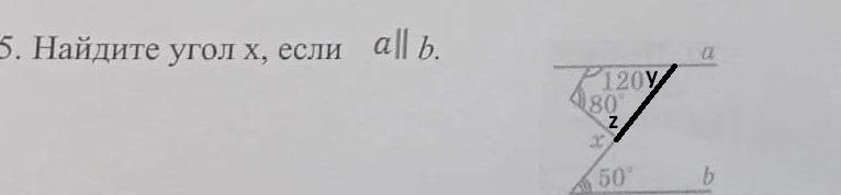 ∠z=360-120-80-50=110°; угол x смежен с углом z; сумма смежных углов равна 180°⇒∠x=180-110=70°