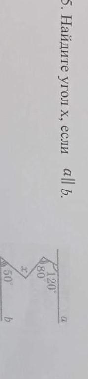Доведём прямую под углом 50 от точки пересечения прямой b до прямой a. Угол y=50° т.к. накрест лежащие углы параллельных прямых равны. Сумма углов любого четырёхугольника равна 360° ⇒