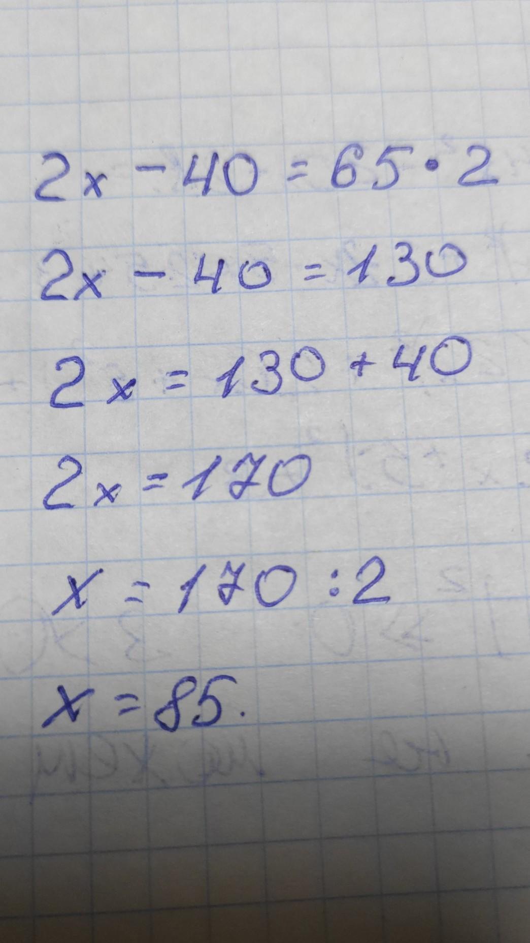 1) Способ:первый за 2 часа проехал 2*65=130 км. а второй 2(65+х) и опередил первый на 40 км. тогда