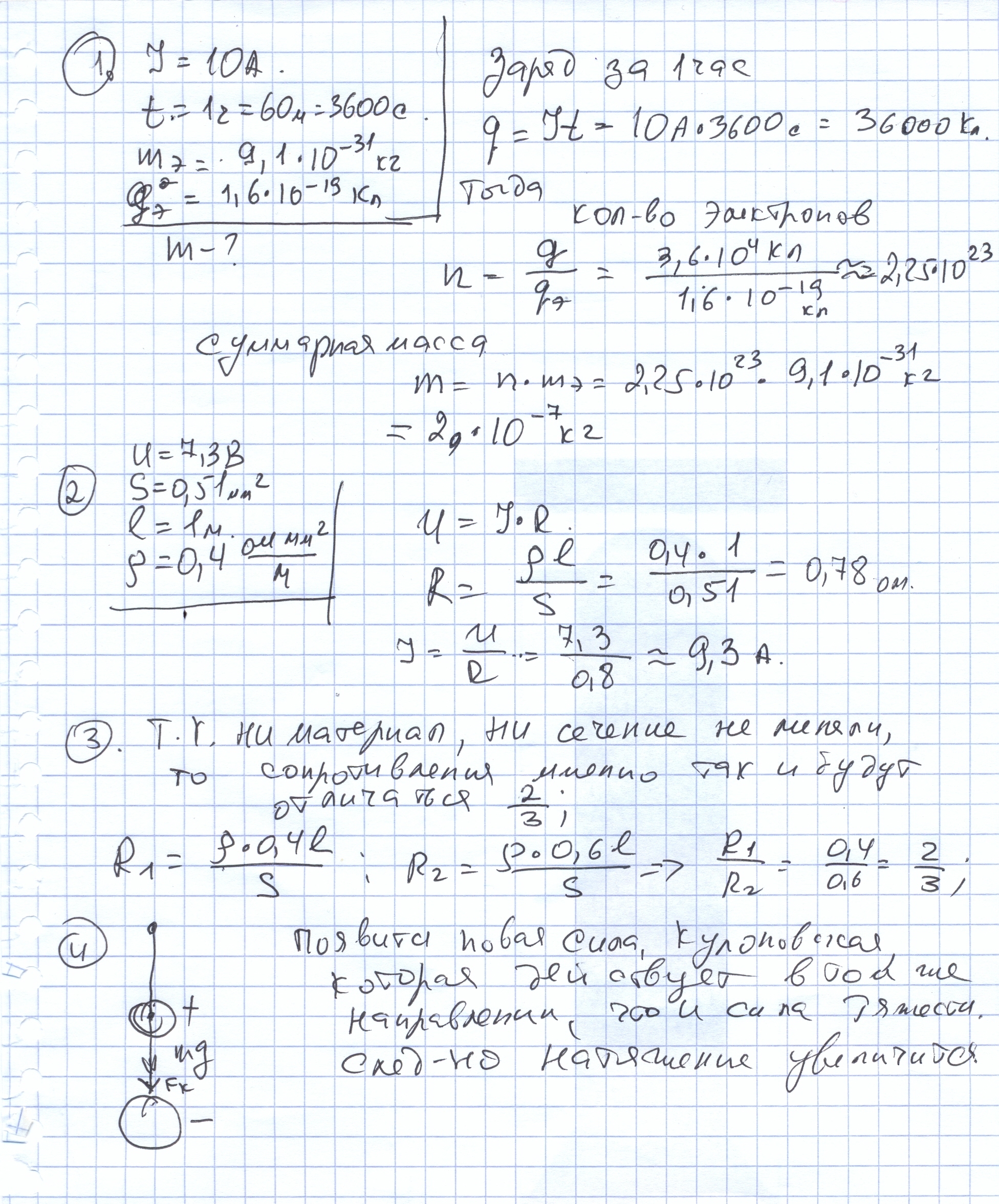 1)Сила тока в проводнике 10 А. Найти массу электронов, прошедших через поперечное сечение проводника за 1 ч?