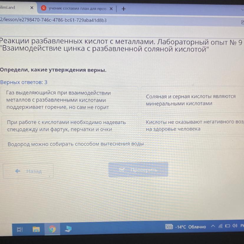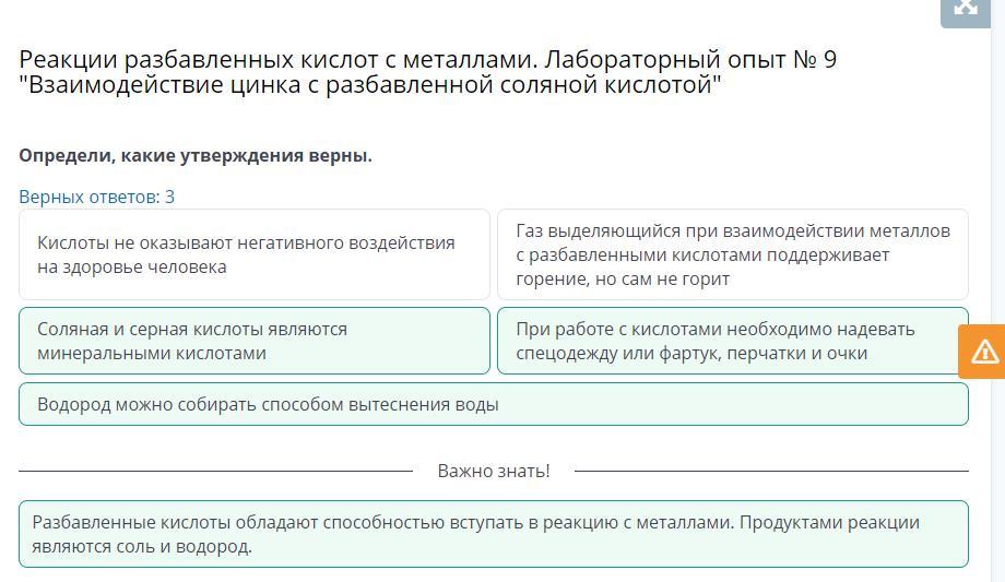 Реакции разбавленных кислот с металлами. Лабораторный опыт № 9