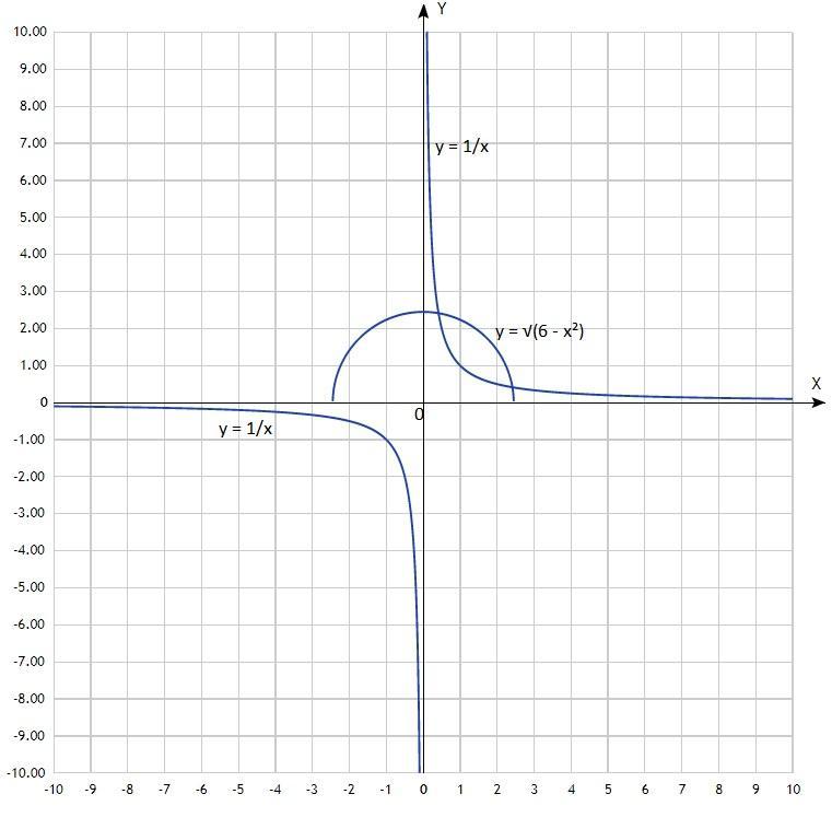 у² = 6 - х² у = 1/х
