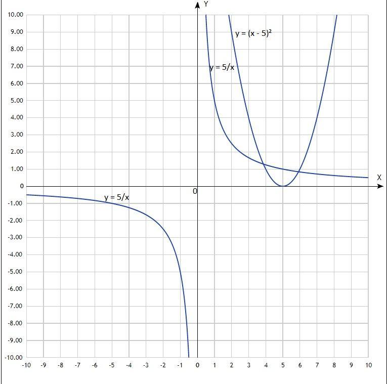 у = (х - 5)²; у = 5/х;