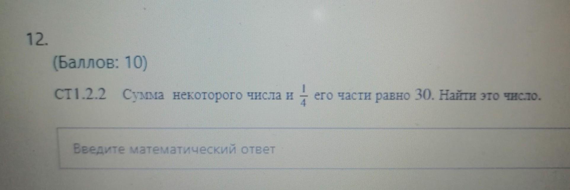 Пусть х - это число. Тогда 1/4х - 1/4 от него. Т.к сумма этих чисел = 30, то получим уравнение: