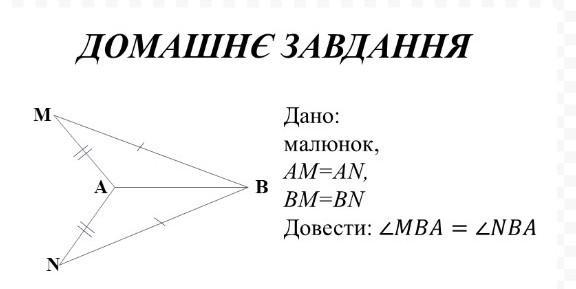 ⇒ ΔMBA=ΔANB (по трем сторонам) ⇒ равенство элементов ⇒ ∠MBA=∠NBA, ч. т. д.